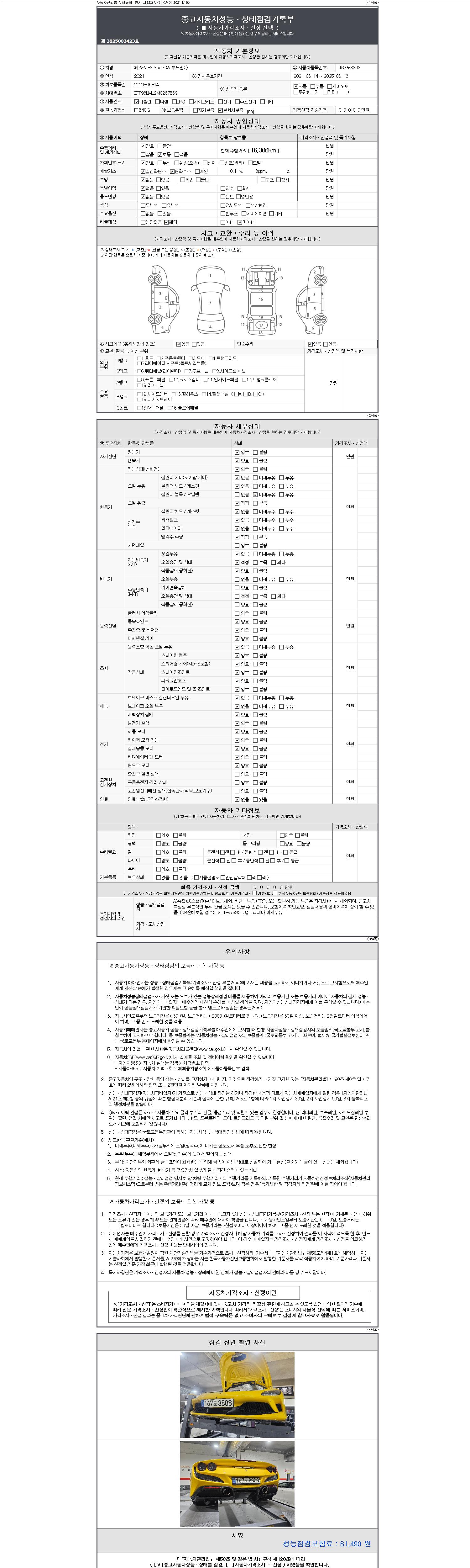 | 주행거리 | 16,306 km | 차량번호 | 167도8808 | 사고유무 | 성능기록부 참조 | 제시번호 | 제 2147483647 호 |