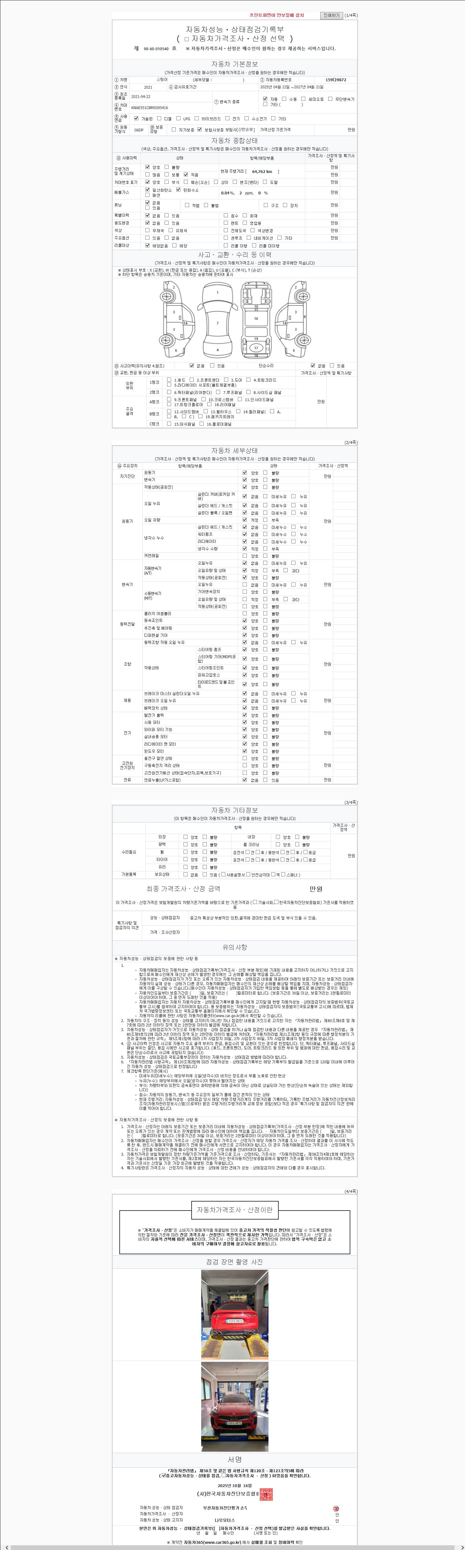 - 2. 차량 등록증이나 성능점검지 등을 상담자에게 요청및 확인하시고 사전에 미리 점검 하시기를 권유드립니다.