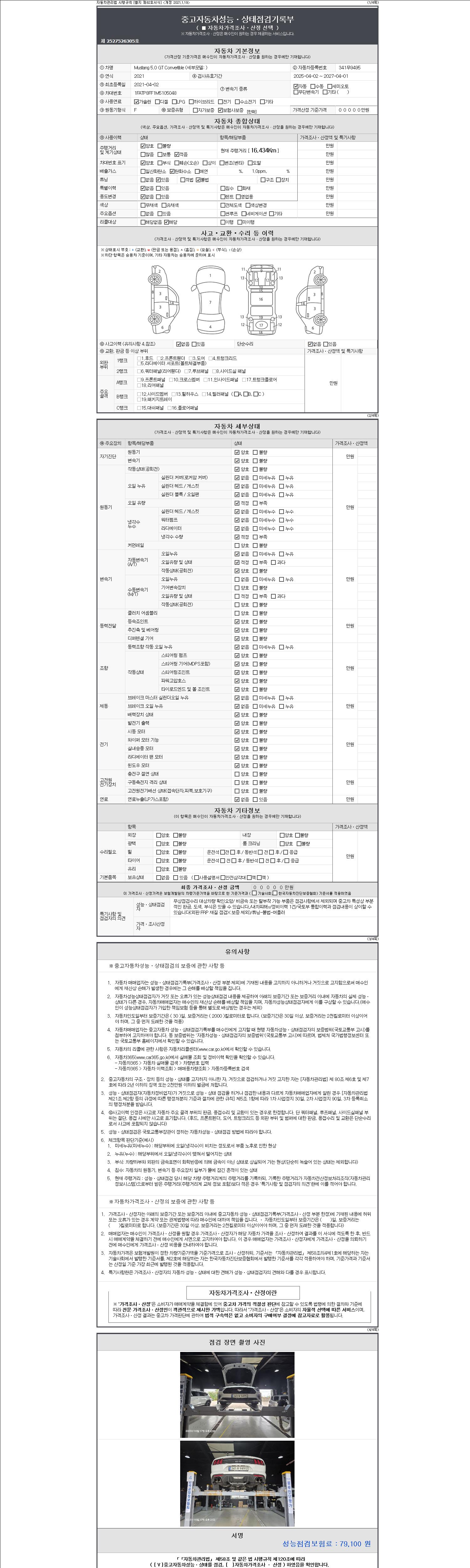 | 주행거리 | 16,434 km | 차량번호 | 341무9495 | 사고유무 | 성능기록부 참조 | 제시번호 | 제 2147483647 호 |