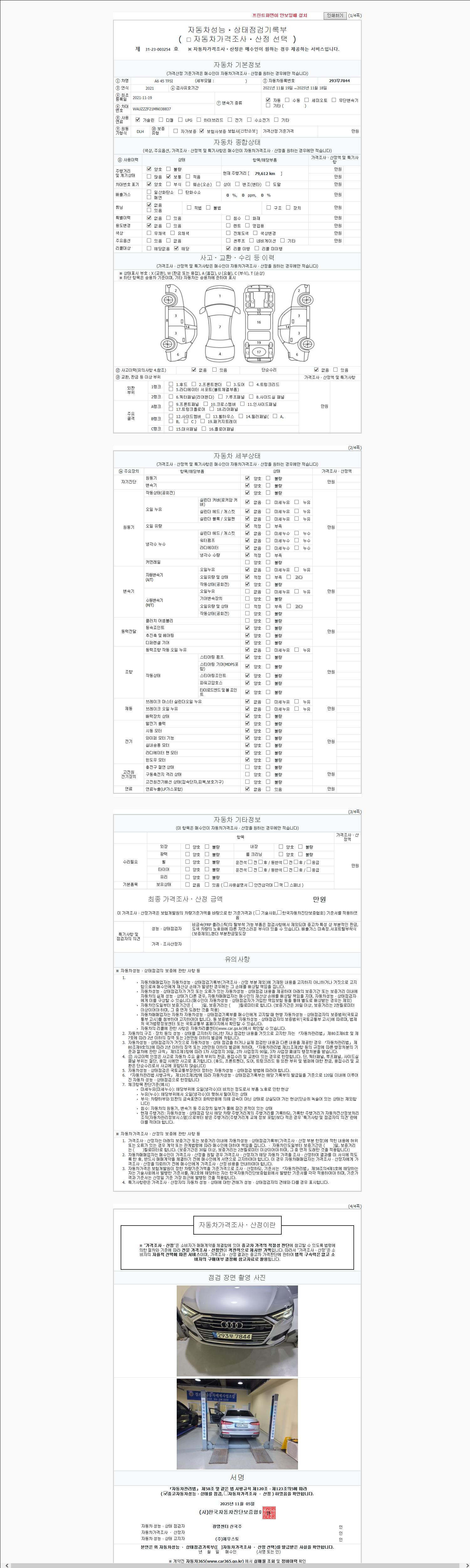 | 주행거리 | 79,612 km | 차량번호 | 293무7844 | 사고유무 | 성능기록부 참조 | 제시번호 | 제 2147483647 호 |