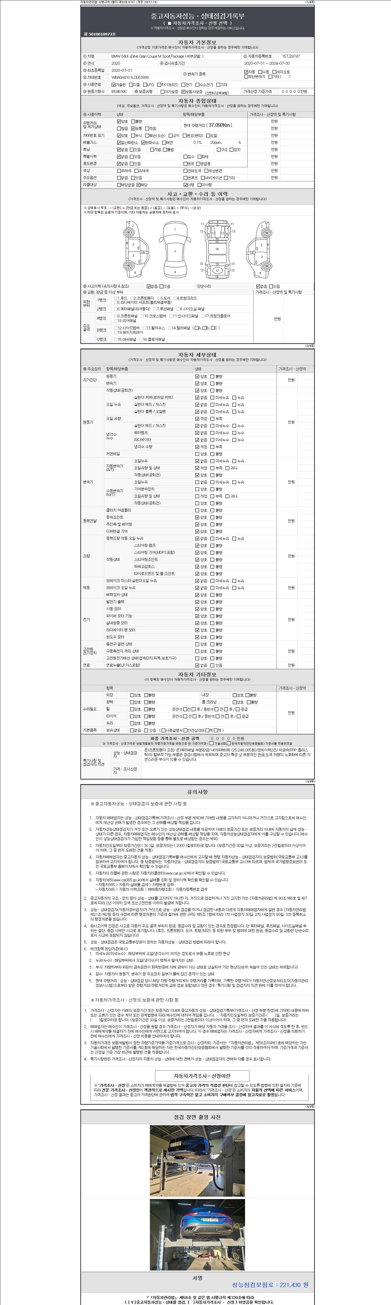 -중고자동차 매매업자를 통해 차량을 구입하실 경우 반드시 "중고자동차 성능, 상태점검 기록부"를 교뷰 받으셔야 하며, 매매업자는 반드시 의무 교부 하여야 압니다.