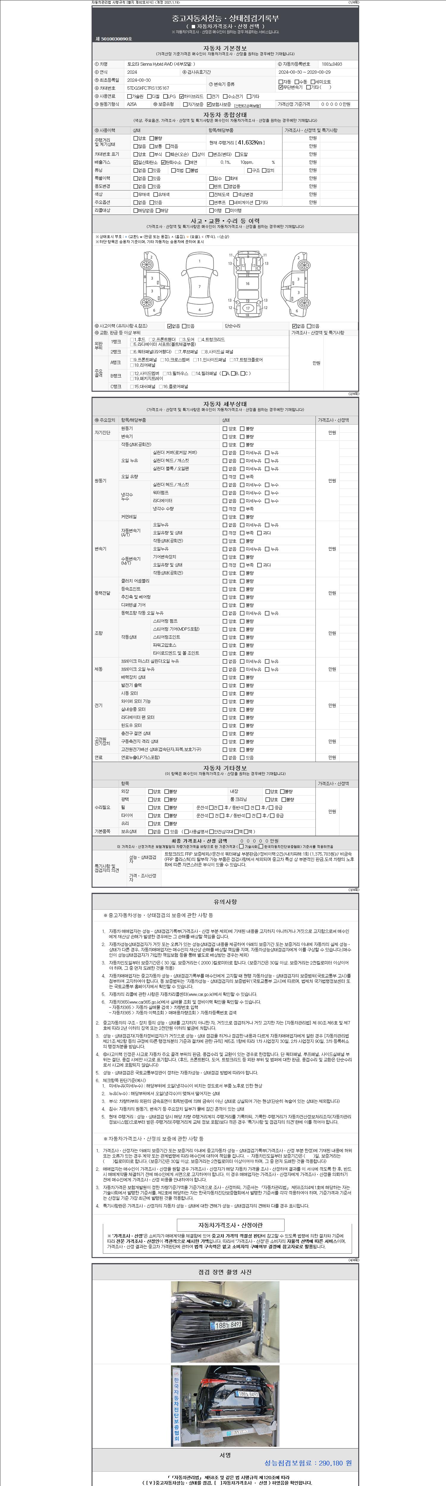 | 주행거리 | 41,624 km | 차량번호 | 188노8493 | 사고유무 | 성능기록부 참조 | 제시번호 | 제 2147483647 호 |