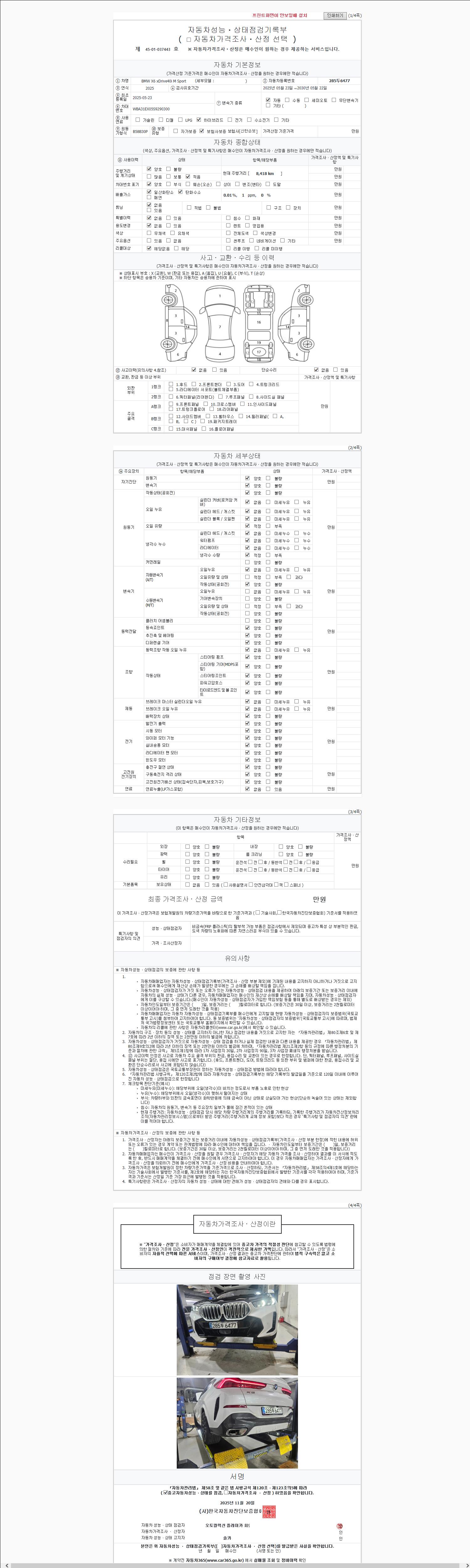 - 2. 차량 등록증이나 성능점검지 등을 상담자에게 요청및 확인하시고 사전에 미리 점검 하시기를 권유드립니다.