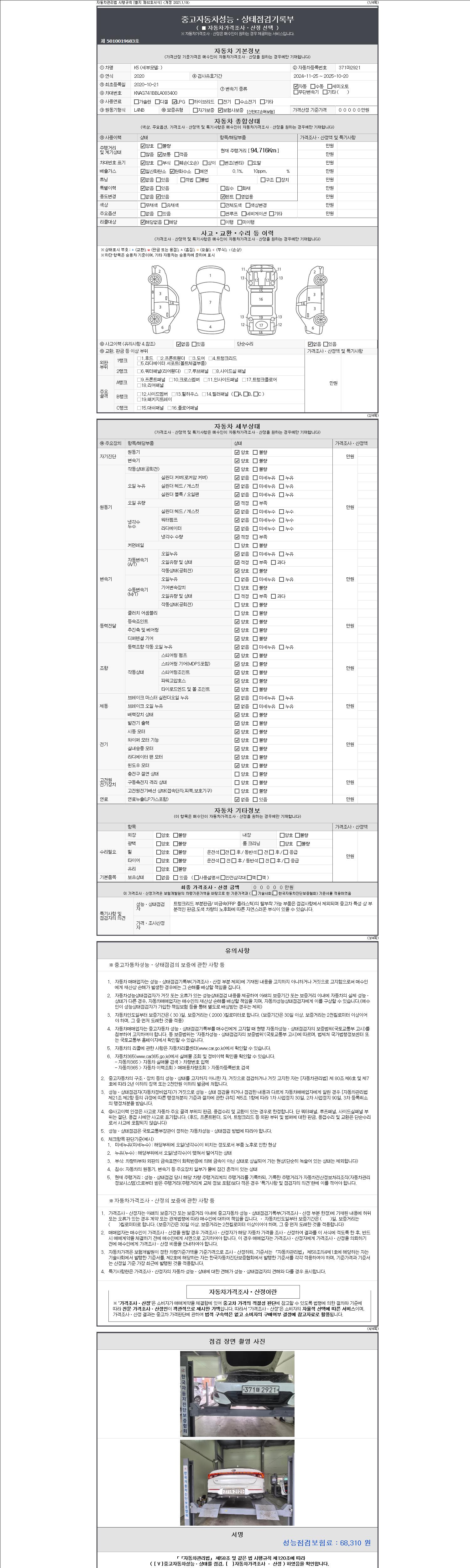 -중고자동차 매매업자를 통해 차량을 구입하실 경우 반드시 "중고자동차 성능, 상태점검 기록부"를 교뷰 받으셔야 하며, 매매업자는 반드시 의무 교부 하여야 압니다.