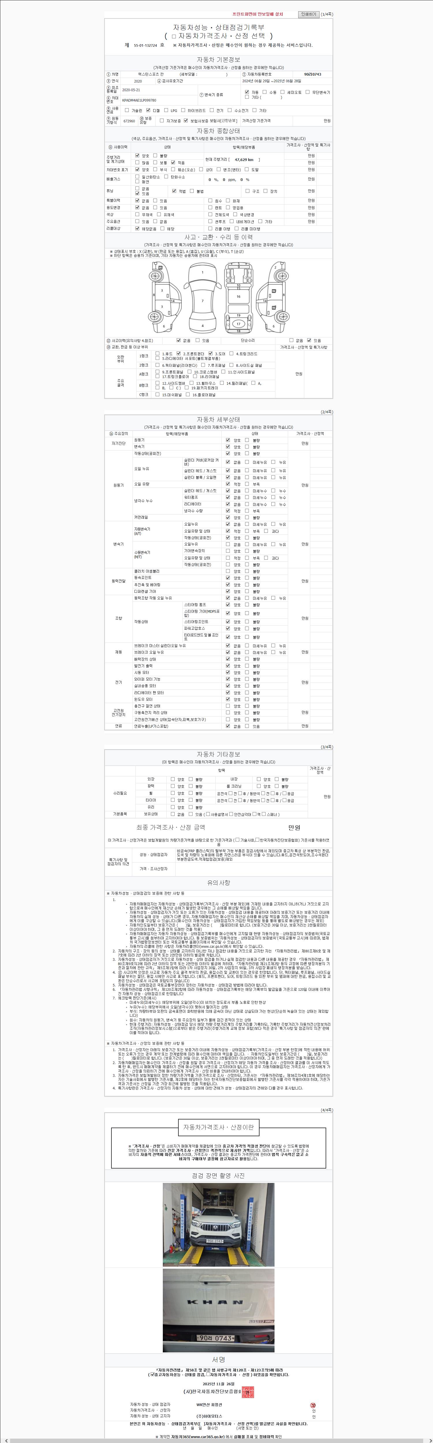 - 2. 차량 등록증이나 성능점검지 등을 상담자에게 요청및 확인하시고 사전에 미리 점검 하시기를 권유드립니다.
