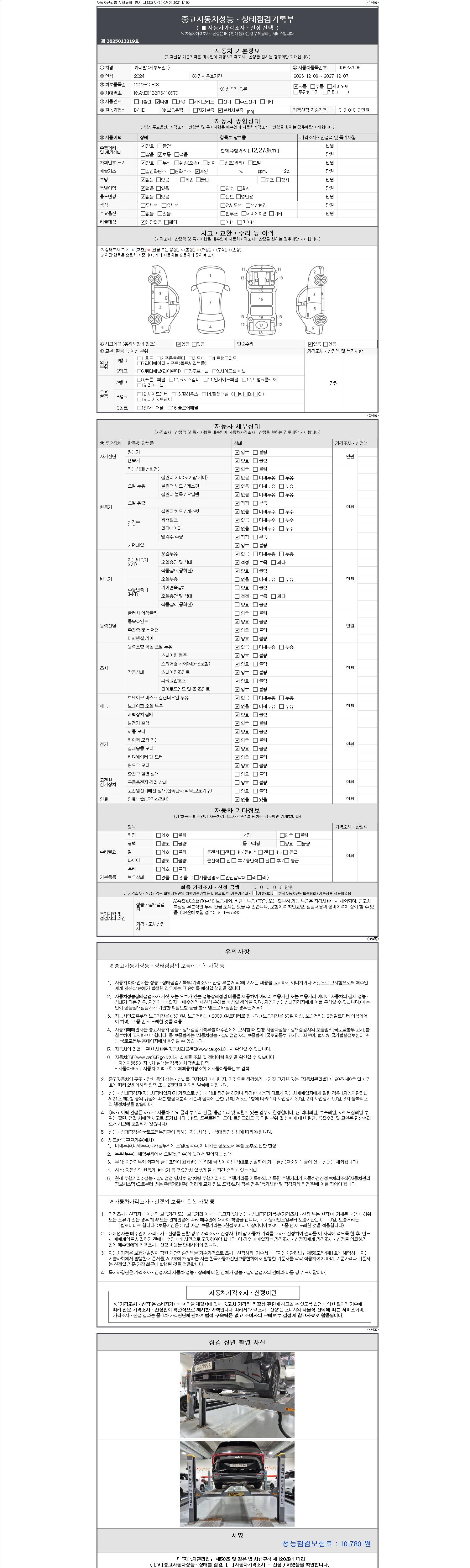 | 주행거리 | 12,273 km | 차량번호 | 196라7996 | 사고유무 | 성능기록부 참조 | 제시번호 | 제 2147483647 호 |