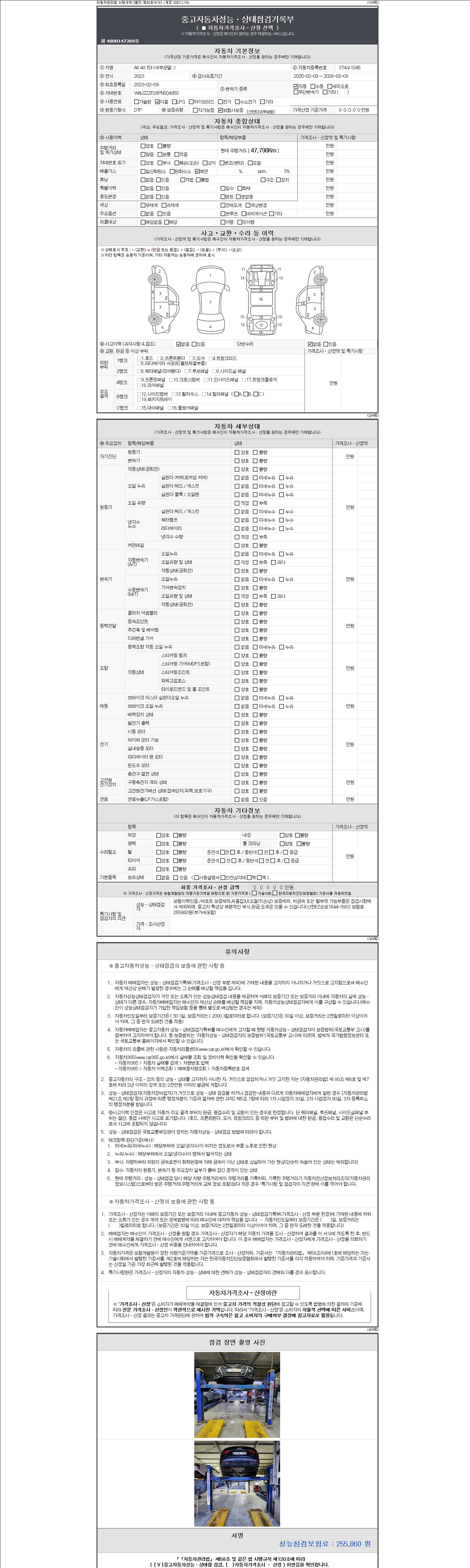 - 2. 차량 등록증이나 성능점검지 등을 상담자에게 요청및 확인하시고 사전에 미리 점검 하시기를 권유드립니다.