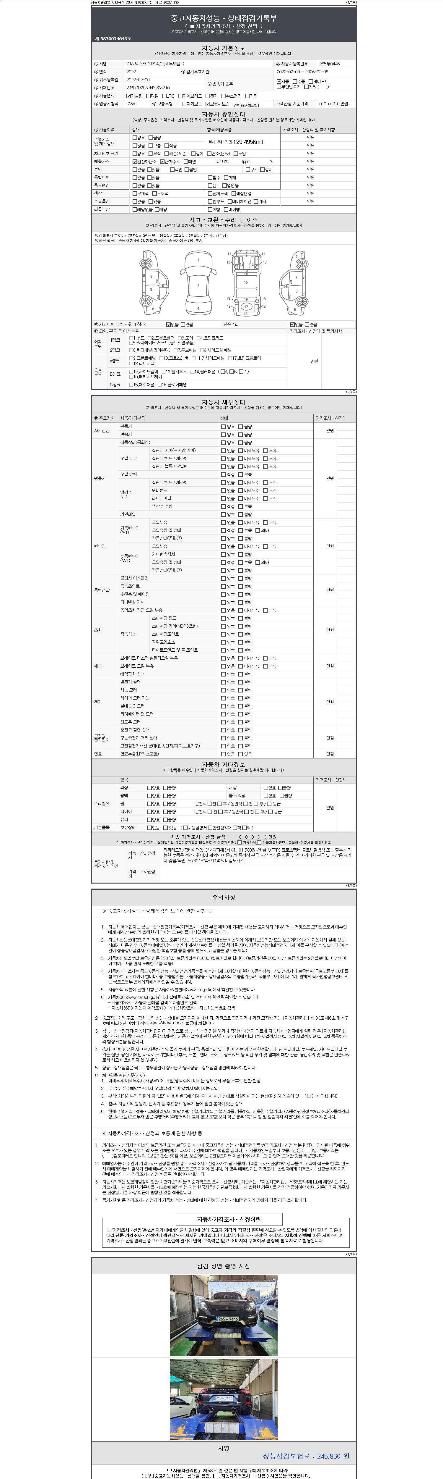| 주행거리 | 29,495 km | 차량번호 | 265두9446 | 사고유무 | 성능기록부 참조 | 제시번호 | 제 2147483647 호 |