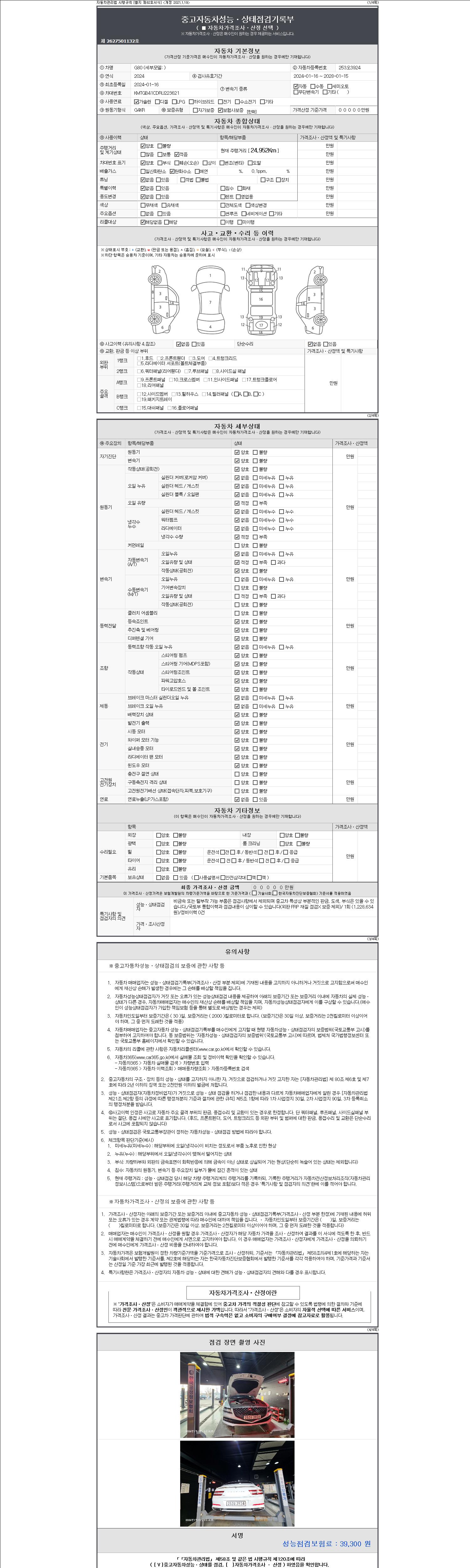 | 주행거리 | 24,952 km | 차량번호 | 253오3924 | 사고유무 | 성능기록부 참조 | 제시번호 | 제 2147483647 호 |