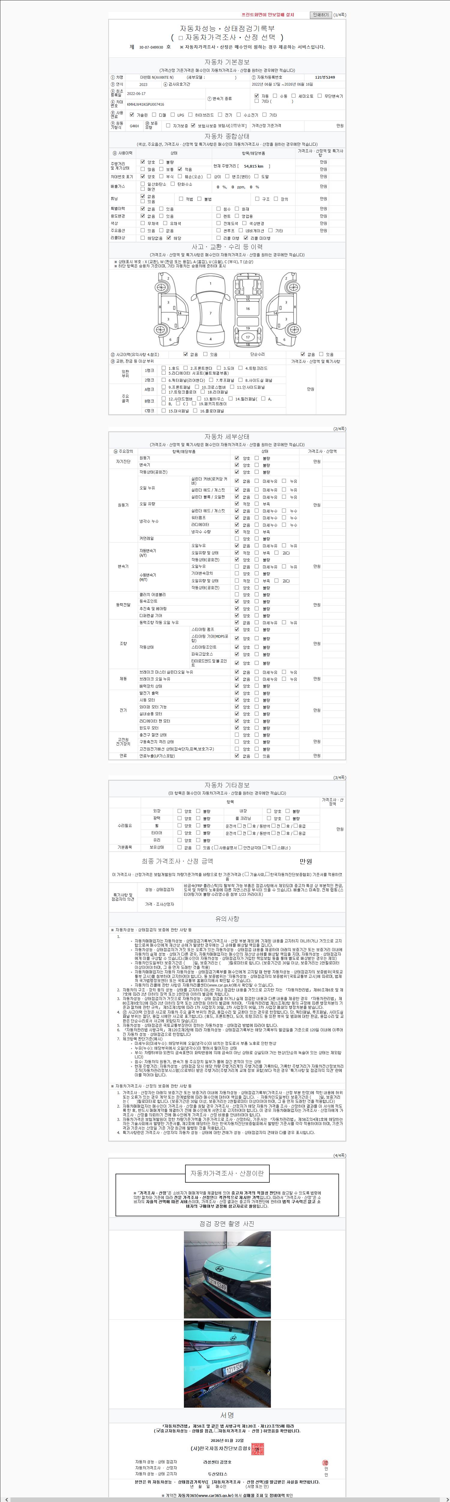- 사고유무 : 성능기록부 참조