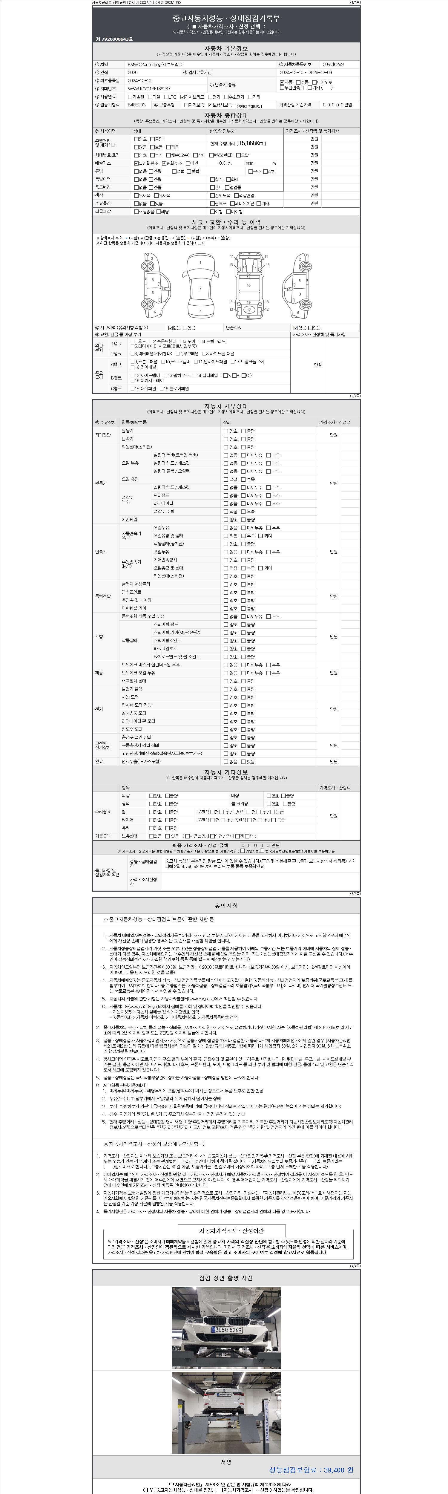 | 주행거리 | 15,068 km | 차량번호 | 305너5269 | 사고유무 | 성능기록부 참조 | 제시번호 | 제 2147483647 호 |