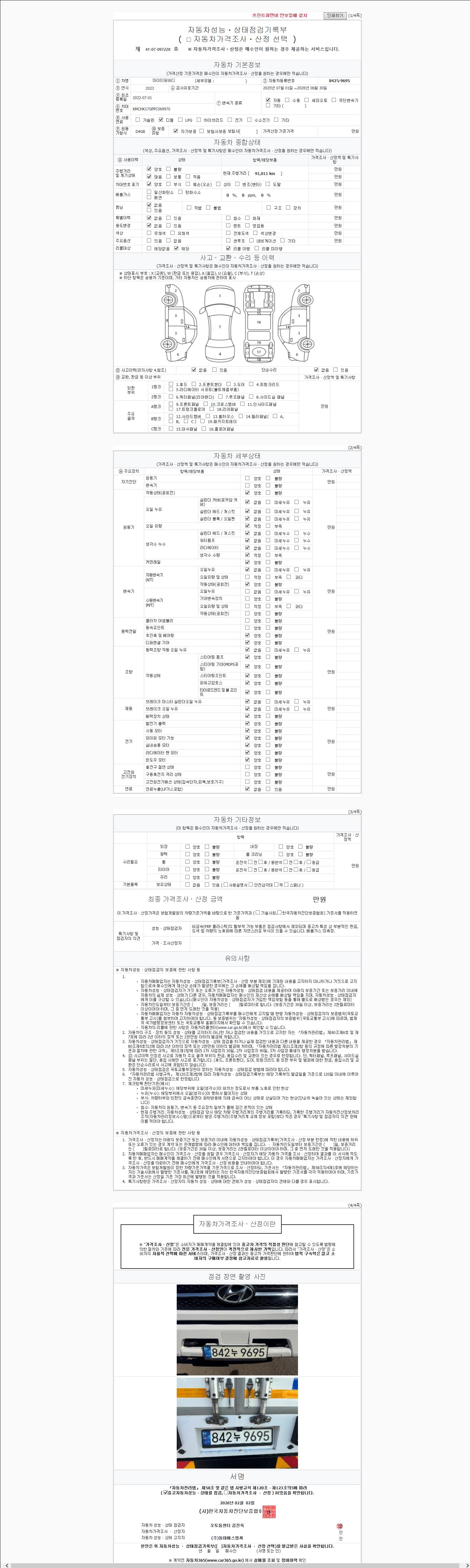 | 주행거리 | 91,004 km | 차량번호 | 842누9695 | 사고유무 | 성능기록부 참조 | 제시번호 | 제 2147483647 호 |