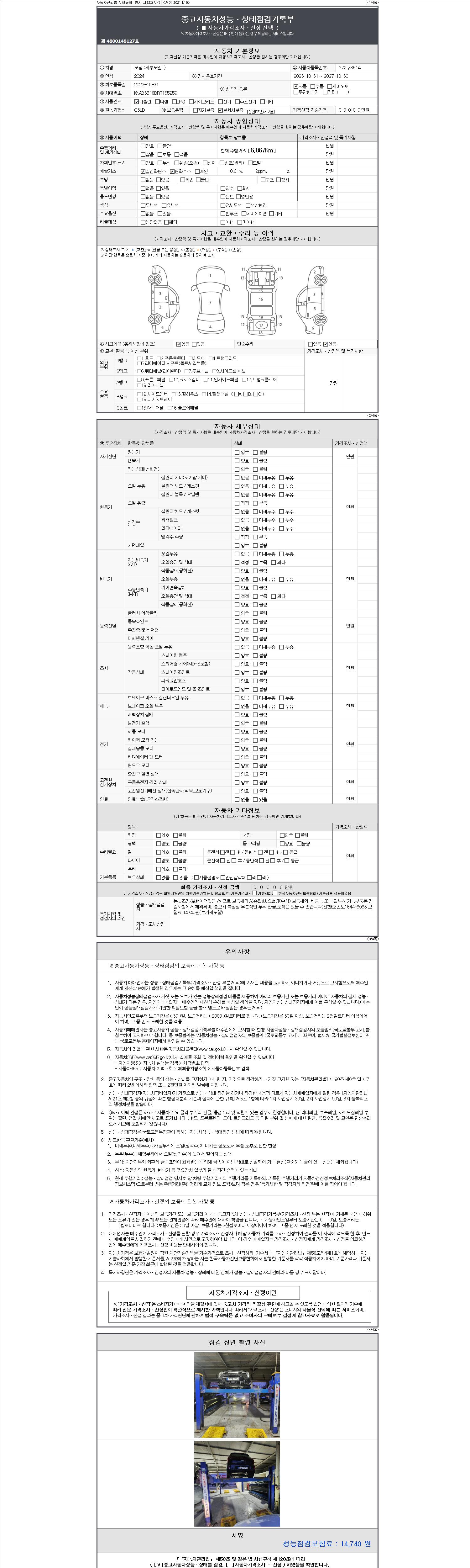 | 주행거리 | 6,867 km | 차량번호 | 372구8614 | 사고유무 | 성능기록부 참조 | 제시번호 | 제 2147483647 호 |