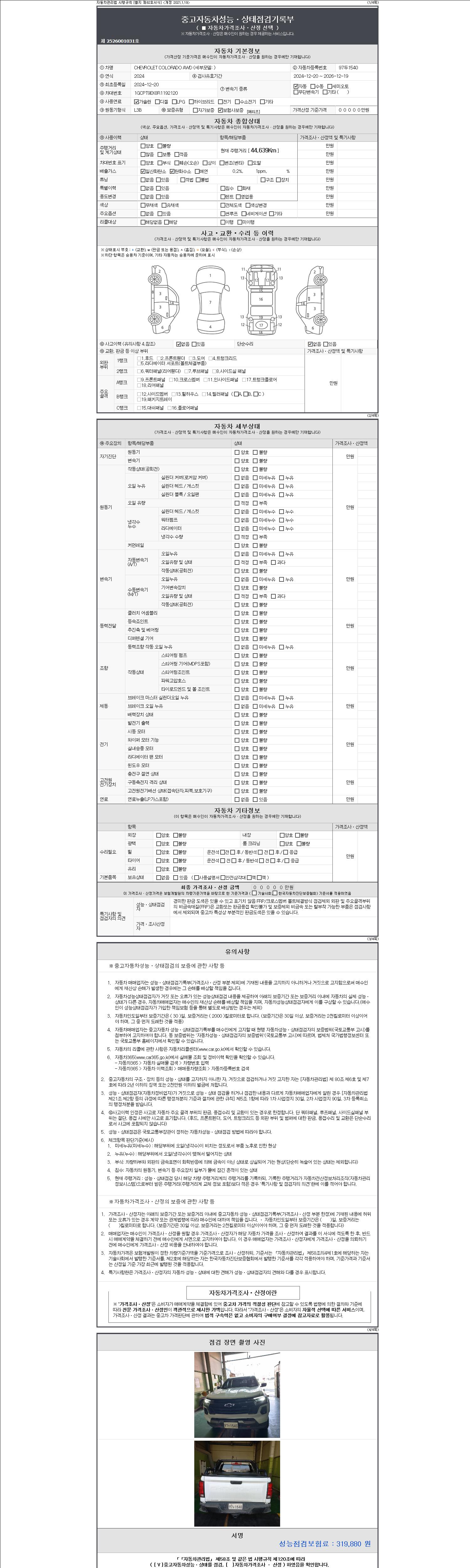 | 주행거리 | 44,639 km | 차량번호 | 97두1540 | 사고유무 | 성능기록부 참조 | 제시번호 | 제 2147483647 호 |
