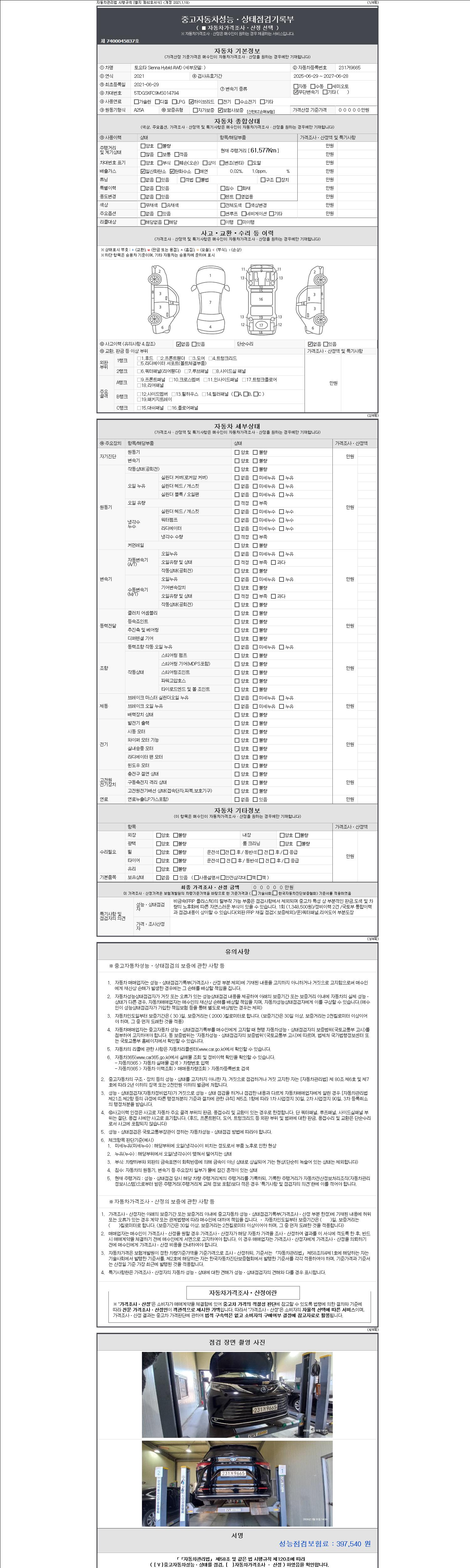 -중고자동차 매매업자를 통해 차량을 구입하실 경우 반드시 "중고자동차 성능, 상태점검 기록부"를 교뷰 받으셔야 하며, 매매업자는 반드시 의무 교부 하여야 압니다.