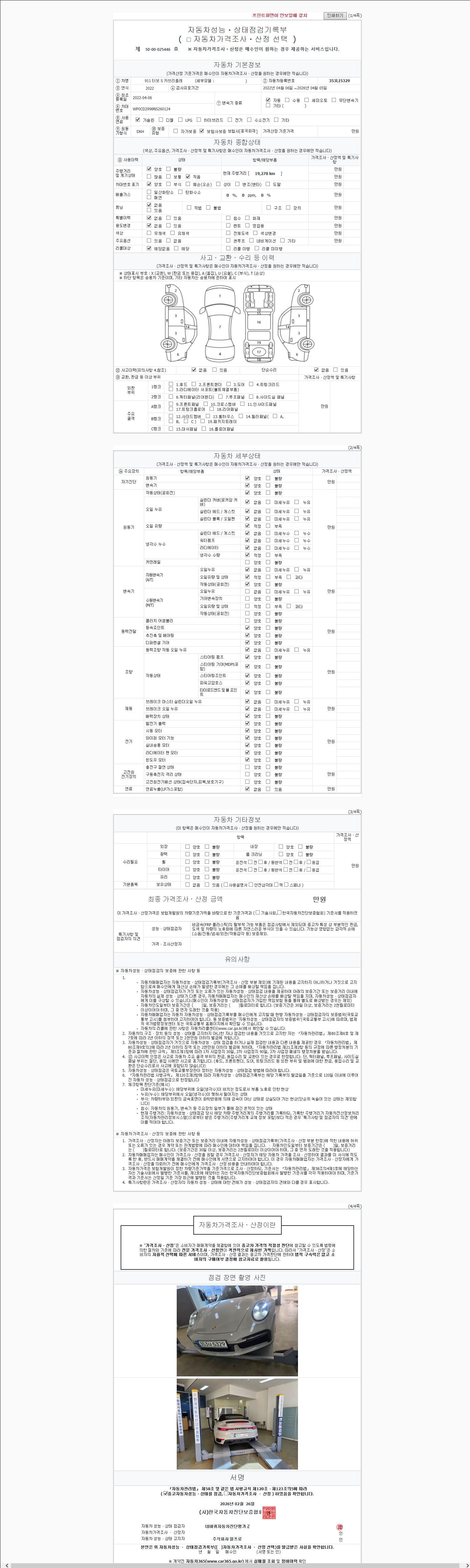 주행거리 19,278 km 차량번호 353나5329 사고유무 성능기록부 참조 제시번호 제 2147483647 호