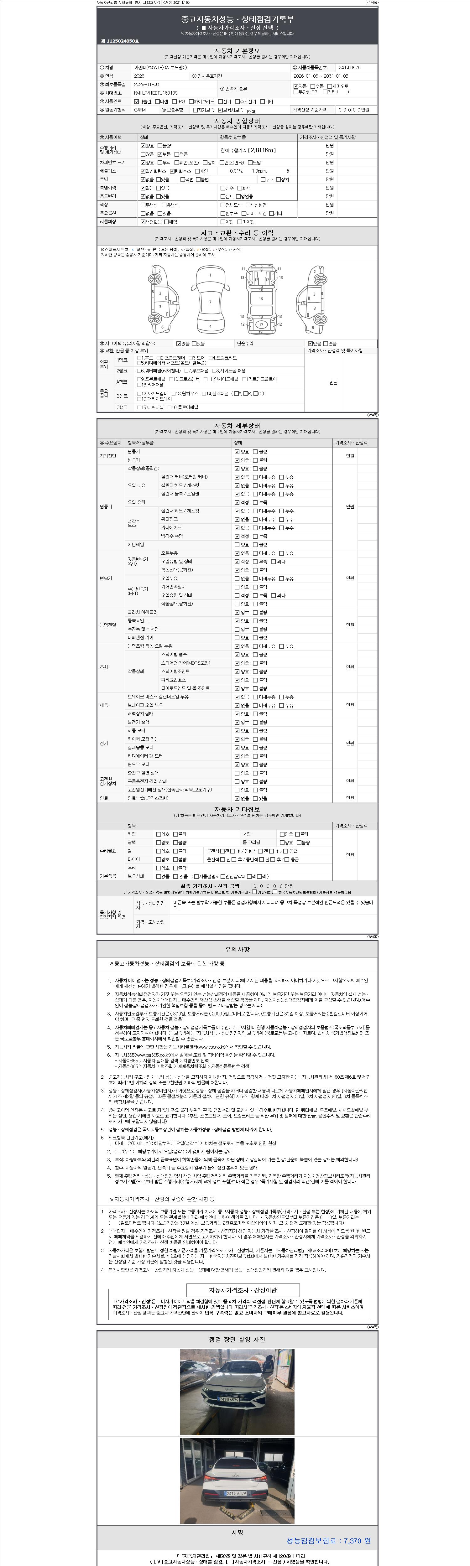 | 주행거리 | 2,811 km | 차량번호 | 241버6579 | 사고유무 | 성능기록부 참조 | 제시번호 | 제 2147483647 호 |