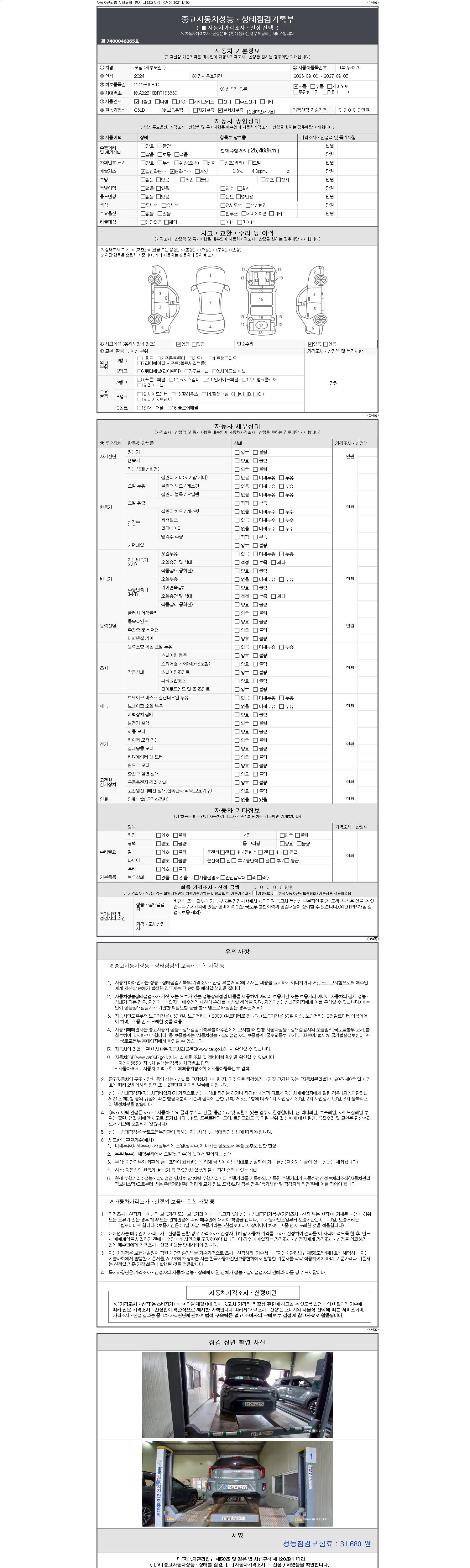 | 주행거리 | 25,468 km | 차량번호 | 142무6379 | 사고유무 | 성능기록부 참조 | 제시번호 | 제 2147483647 호 |