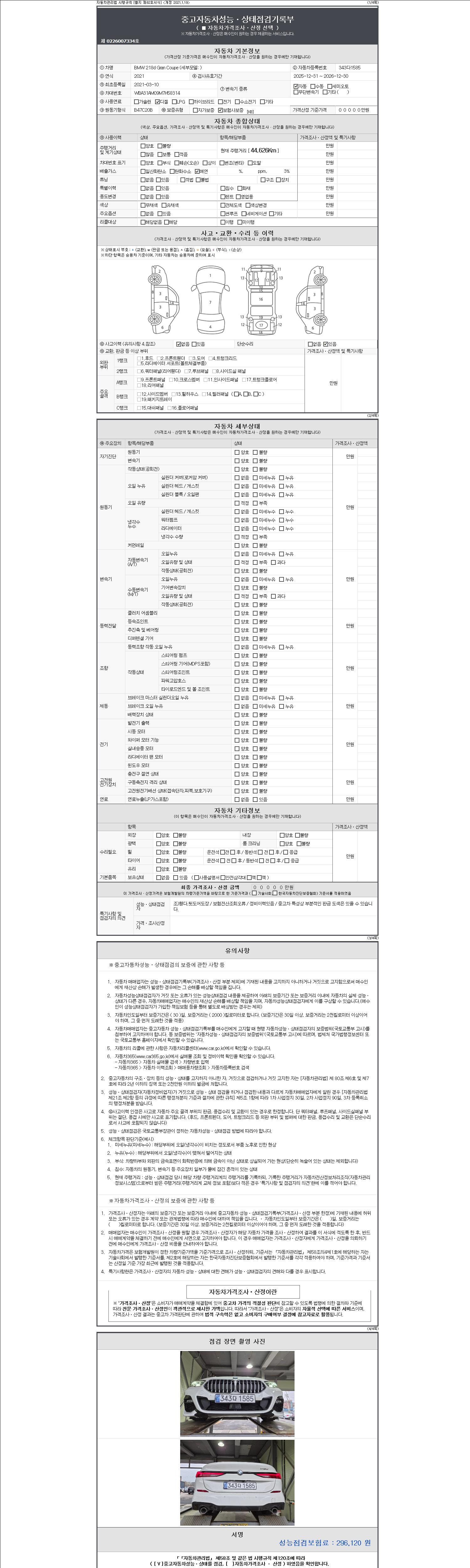 | 주행거리 | 44,628 km | 차량번호 | 343다1585 | 사고유무 | 성능기록부 참조 | 제시번호 | 제 2147483647 호 |
