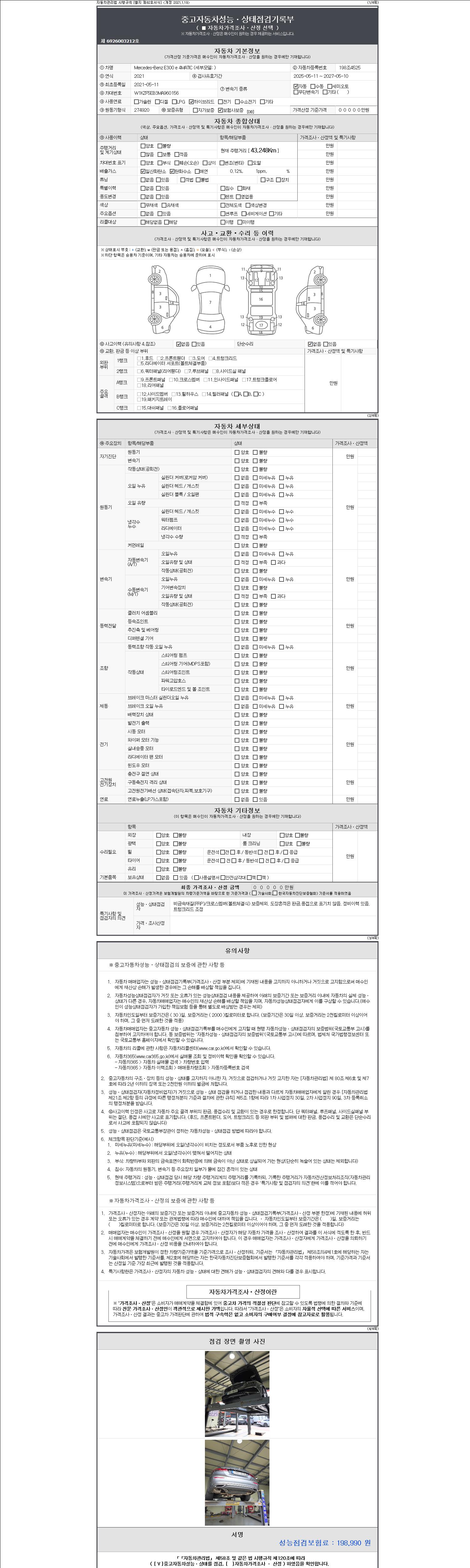 | 주행거리 | 43,248 km | 차량번호 | 198조4525 | 사고유무 | 성능기록부 참조 | 제시번호 | 제 2147483647 호 |
