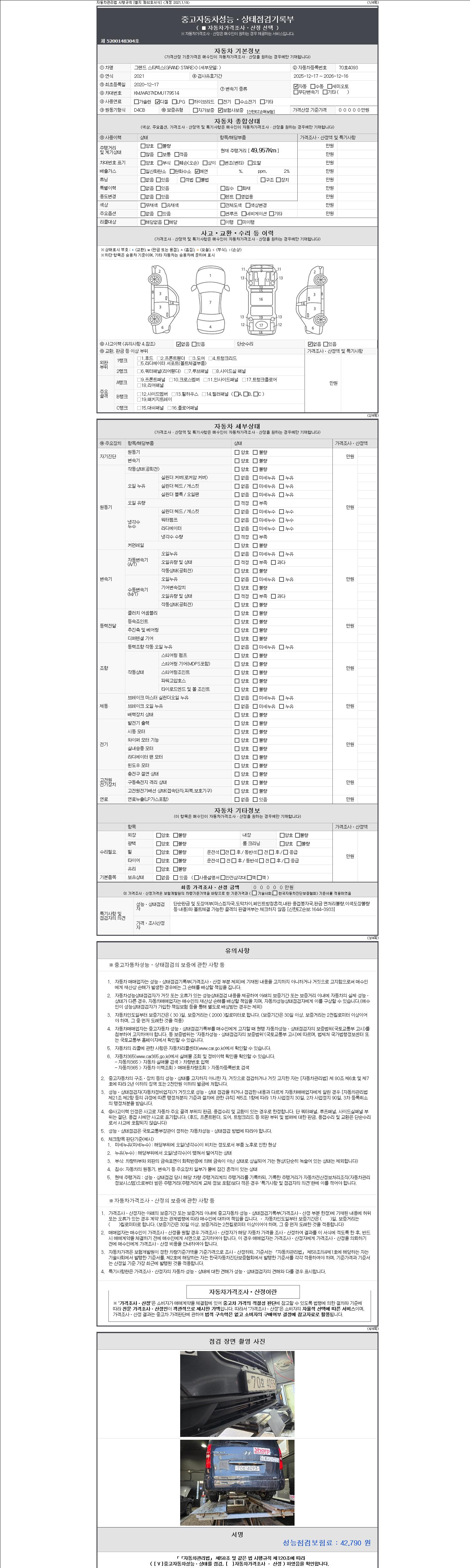 - 2. 차량 등록증이나 성능점검지 등을 상담자에게 요청및 확인하시고 사전에 미리 점검 하시기를 권유드립니다.