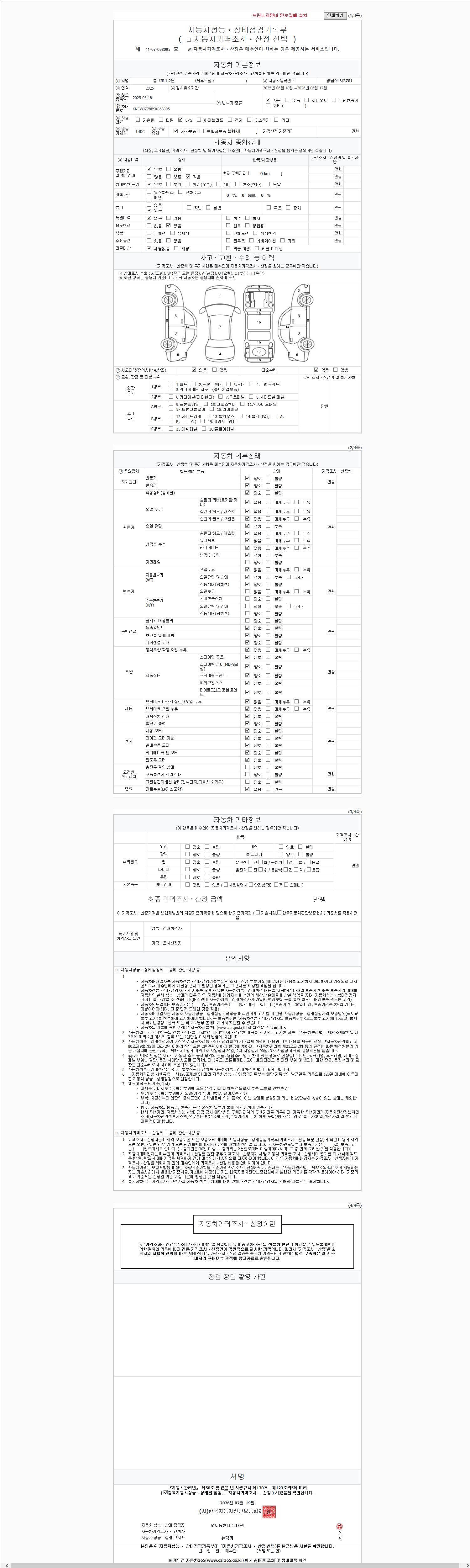 - 2. 차량 등록증이나 성능점검지 등을 상담자에게 요청및 확인하시고 사전에 미리 점검 하시기를 권유드립니다.
