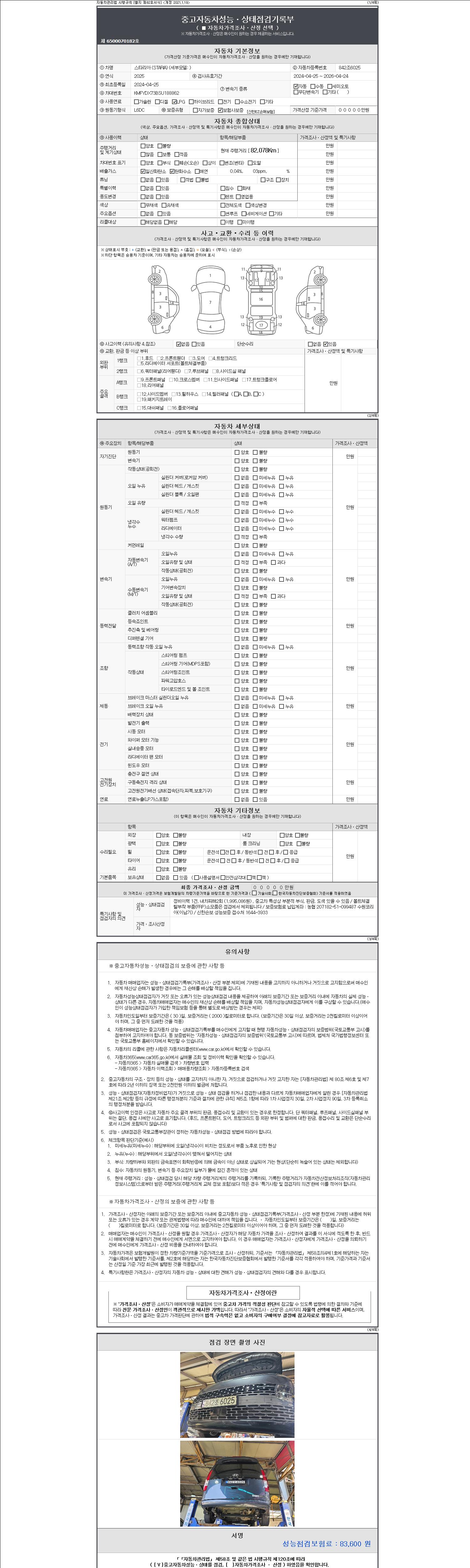 | 주행거리 | 82,078 km | 차량번호 | 842조6025 | 사고유무 | 성능기록부 참조 | 제시번호 | 제 2147483647 호 |