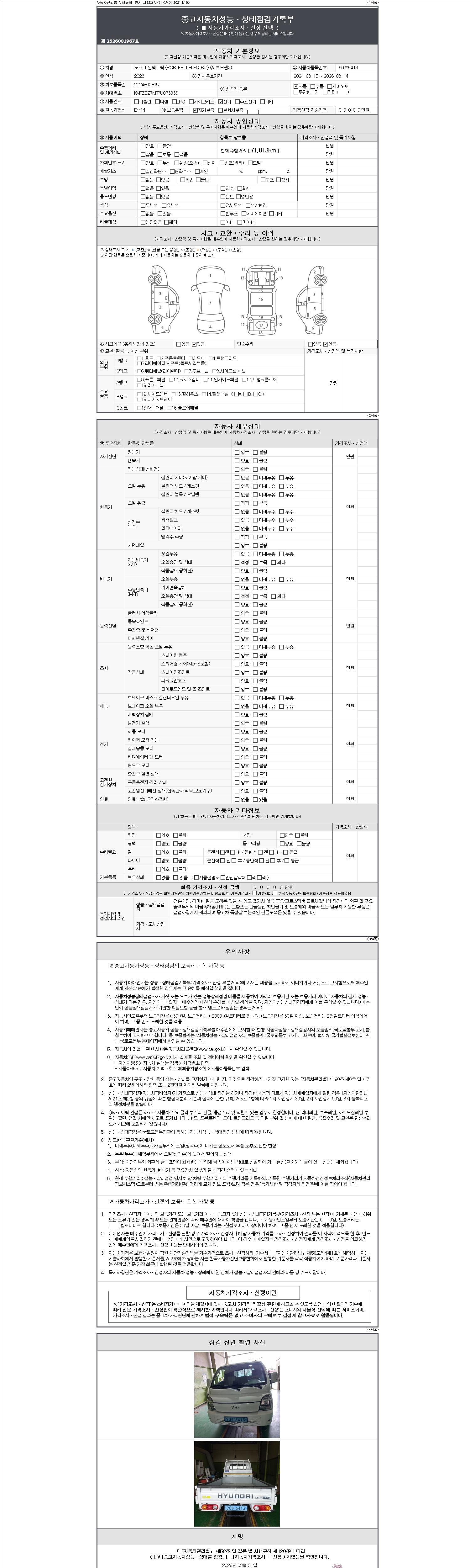 | 주행거리 | 71,013 km | 차량번호 | 90루6413 | 사고유무 | 성능기록부 참조 | 제시번호 | 제 2147483647 호 |